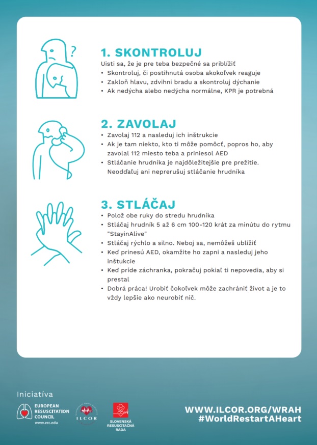 Je účinným a jednoduchým nástrojom, ktorý dokáže zachrániť ľudský život. Preto by mal tento postup ovládať každý – laik i odborník. Ročne sa náhle zastaví srdce mimo nemocnice približne u 350 000 Európanov, ktorí sú väčšinou v produktívnom veku. Približne 100 000 z nich by mohlo stále žiť, keby im bola ihneď po náhlom zastavení obehu poskytnutá adekvátna pomoc. Nie, nemusí byť vysokoodborná. Vykonávaním resuscitácie nemôžete urobiť nič zlé. Jediná vec, ktorá môže byť zlá, je neurobiť nič.